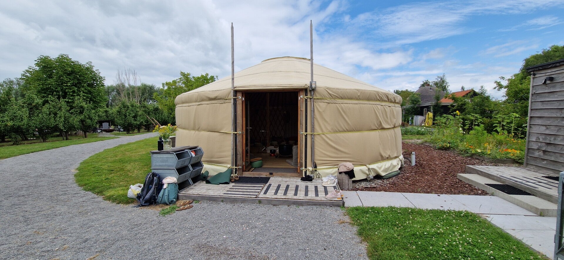 Op dit mooie terrein staat een grote yurt waar je op een fijn matrasje kunt liggen voor het klankschalen concert. Je kunt je ook gedurende de dag terugtrekken in de yurt, buiten zijn er veel verschillende plekjes waar je kunt zitten en slenteren.